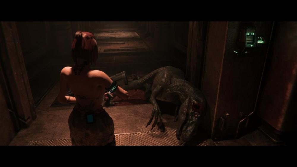 Hi... I'm Nag and I like to think of myself as fairly lenient/forgiving in regard to games, now that's out of the way let me introduce you to a game called Code Violet... which has a fairly good chance of being one of the worst games released in 2026... one week in. For a dev that apparently won't release the game on PC due to "lewd mods" this is how you start the game, dressed in your scivvies and completely defenseless. It's a survival horror so if you played Dead Space, the Resident Evil remakes or latest Silent Hill games you know exactly how this plays from the off... well you would if it played anything like as well as those games. You'll spend your time searching out key cards, health and combat supplies. There's a combining element for resources so you can craft on the fly and once you find a weapon (not too far in) you'll be able to defend yourself, well you can try. I started the game on normal but due to it being pretty bloody vague on what you were supposed to be doing I kept finding myself being chomped on by Raptors over and over... even once I'd managed to get a pistol, so after a little humming and ahhhing I decided to restart on easy... and easy certainly lives up to it's name by being able to down a Raptor in around three pistol shots or one shotgun blast. Not that being on a higher difficulty would require any more thought as the Raptors and Compies basically run directly at you and Dilophosaurus stands stock still and spits poison unless you attempt to run directly at it... Halo it ain't. I've managed to complete the first two segments, it's linear and treats areas as stages... once you leave you can't return, but that's backfired on me as the second area basically started a boss fight that once completed locks you in to leaving the place and there was stuff I wanted to go back for so I think I'm actually going to restart again...🙄 Can't decide on difficulty though... easy is too easy but do I really want push back from a decidedly bad game? So... some bad stuff. 1. It looks pretty bad, I've literally just played through the PS4 version of RE5 and I'd hand on heart say that looks better. 2. It's in a widescreen format, something which I detest in games... if I'd known that I probably would've knocked the purchase on its head for that alone. 3. I've had voice work cut out during cutscenes so I've had to enable subtitles... something I barely ever make use of. 4. Buttons not registering... I've played the beginning twice now and you start off chased by Raptors, the first time I could dodge by pressing what was on screen the second time I couldn't... I've no idea why. 5. Hit detection seems to be all over the place and knowing if you've hit something or are being hit is complete guesswork... or it would be without the hilarious ragdoll physics. So yeah, I hold my hands up and admit I was swayed by the boobs... but remember a lot of times boobs can lead to bad decisions being made...