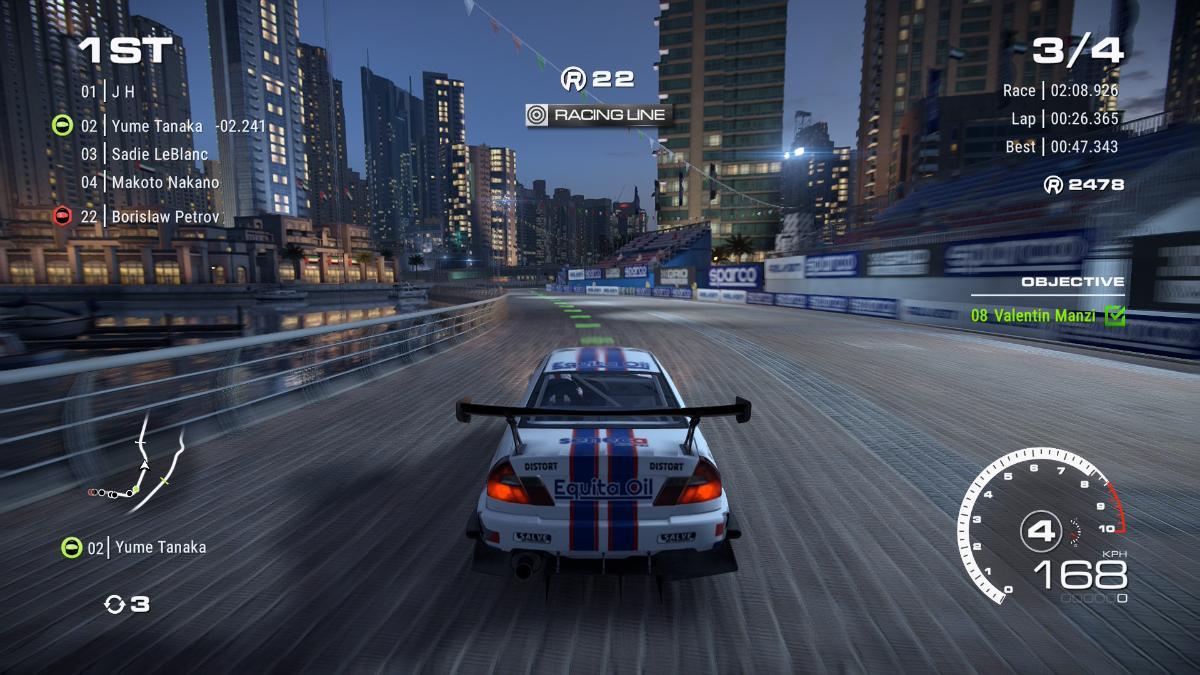 Bought this on a whim after seeing DF's video about it. Originally came out in 2022, but has since been ported to every hardware on the planet that has a screen, the latest of which is Switch 2. The only Grid I ever played was the first one they released on PS360 back in the day, when their Ego Engine made their debut (which, to my surprise, they're still using to this day, which is neat). But this feels very much like that game, because it's still fundamentally a take on the MSR/PGR street-racing template, with city courses and other urban areas being the main stages. It also has a minor version of the kudos system in place where certain actions like staying on the racing line and doing neat driving earns you extra XP. This is also the game where people raised their eyebrows a bit upon announcement because it features full FMV cutscenes and some sort of rags to riches storyline. It's super campy and I sometimes skip the scenes, but at the same time it's kind of nice to give everything a bit more context than just picking a track and driving around. It does make me wonder if the production costs were worth it though, considering it stars, among others, Ncuti Gatwa, who can't have been a cheap booking after Sex Education and Dr. Who. But this is only part of the content, because next to the strictly curated story mode (of which there are four seasons) there's also a classic career mode where you start with slow cars, built up some reputation and money and hire your own team. There's even a mini skill tree that allows you to develop commands for your teammates to order them block dangerous opponents during a race for example – though I haven't really tried any of that yet. Handling is like that middle ground between a pure sim and nutty stuff like Ridge Racer, but there's a lot of adjustments you make in the settings that probably can shift it slightly further in either direction. I left it at normal and all the standard settings which feels relatively arcade-y, with oversteering being borderline impossible but you still need to take your corners with care. As for the Switch 2 port itself, it's quite excellent. It has two modes in TV and four modes in handheld mode (one of which is battery saving, which I've never seen before), which you can pick independently, so no switching around whenever you change the way you play. I quickly decided to stick to quality mode because it gives you native resolution in handheld and just overall a very nice picture quality with a stable 30fps (the screenshots below are from handheld mode), but DF's videos suggested they're all good and it's down to personal preference. The big talking point on Switch with these games is always the lack of analogue buttons, but due to the arcade-gameplay of it I don't find it that bothersome – though at higher difficulties without ABS and other assists it might become a more obvious downside. (You can turn a lot of stuff off you see in the screenshots, too – motion blur and basically every HUD element as well.)